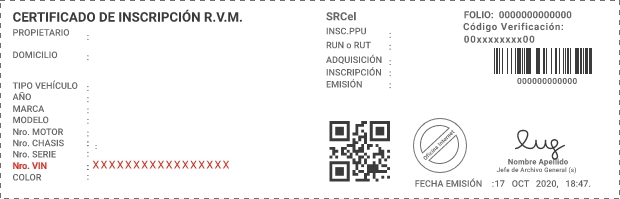 Imagen ilustrativa de Certificado de Inscripción RVM (Registro de Vehículos Motorizados) o Padrón del vehículo.